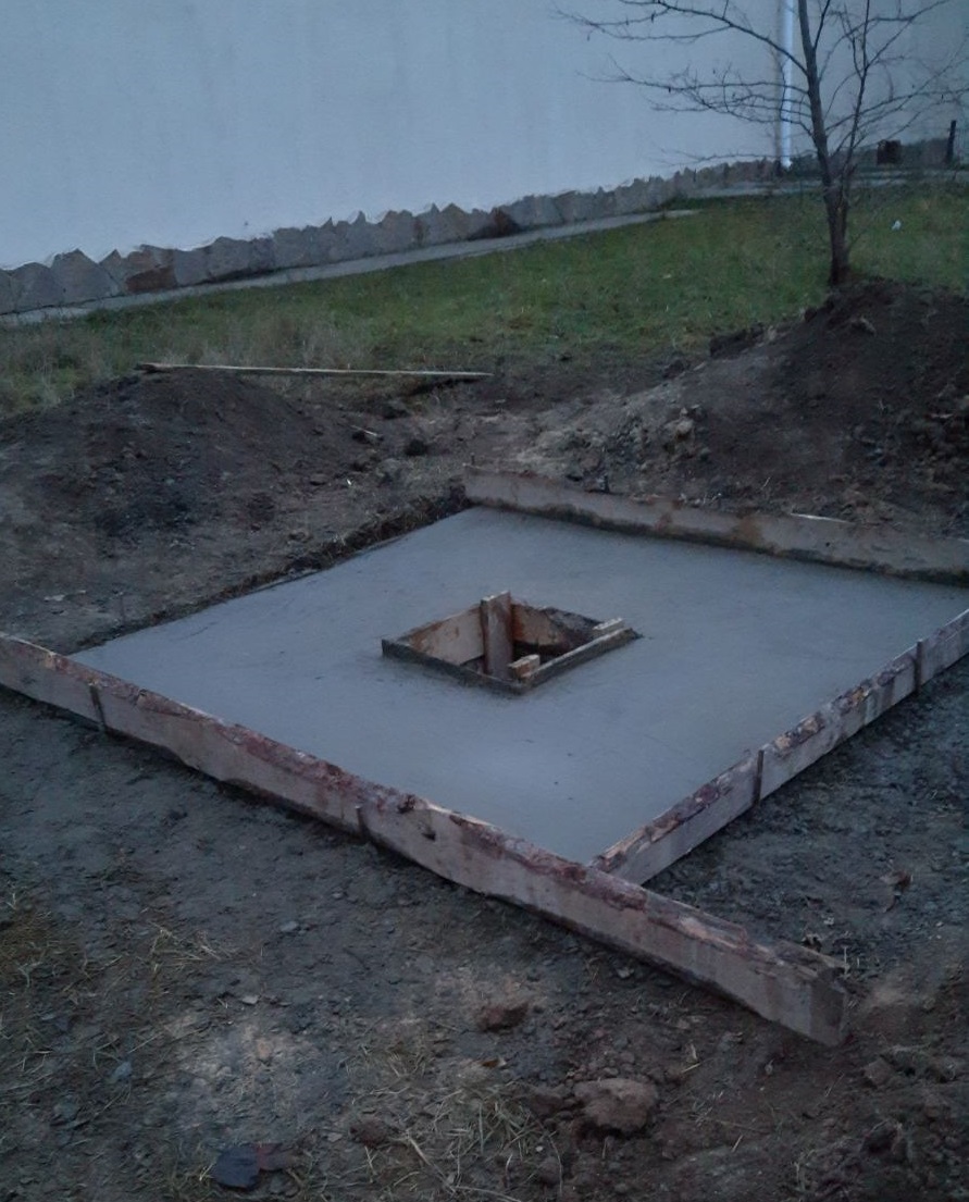 На данный момент завершен первый этап строительства - заливка фундамента.