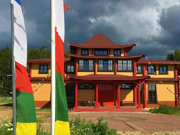 Буддийский зал: вход с левой стороны здания по 2-й металлической лестнице, украшенной разноцветными флажками.