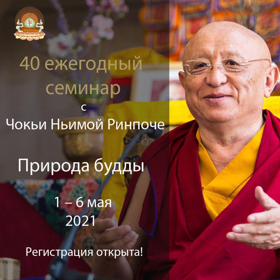 с 20 по 24 ноября состоится 40-й ежегодный осенний семинар Института Рангджунг Еше. Учения будут проходить в режиме онлайн и завершатся в День Гуру Ринпоче. Чокьи Ньима Ринпоче дарует наставления о природе будды. Регистрация откроется 12 ноября.
