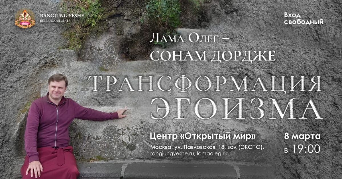 Итак, напоминаем, лекция «Трансформация эгоизма» состоится 8-го марта в Москве в центре «Открытый мир» в Большом зале (ЭКСПО).